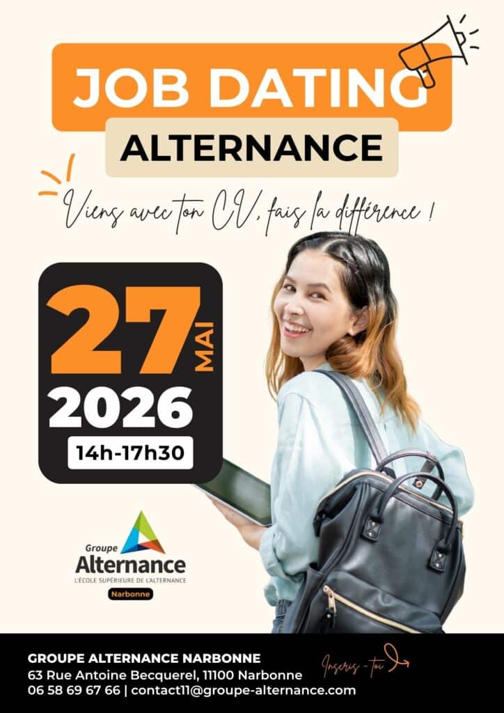 Le campus Groupe Alternance Narbonne organise un Job Dating dédié à l’alternance le mercredi 27 mai de 14h à 17h30.