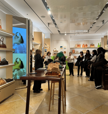 Ce séjour a aussi permis aux étudiants de vivre une belle opportunité professionnelle avec la rencontre de la directrice générale de Longchamp, Maria Carmona. Un moment privilégié durant lequel ils ont pu échanger, poser leurs questions et découvrir les coulisses d’une marque internationale. Une expérience concrète qui donne encore plus de sens à leur formation.