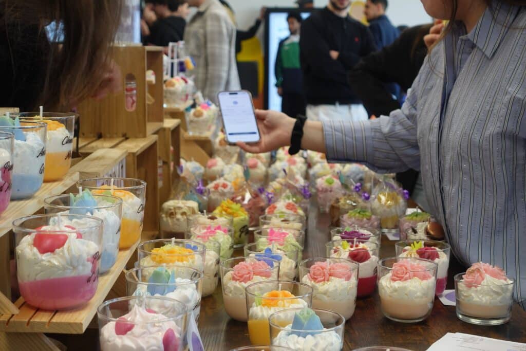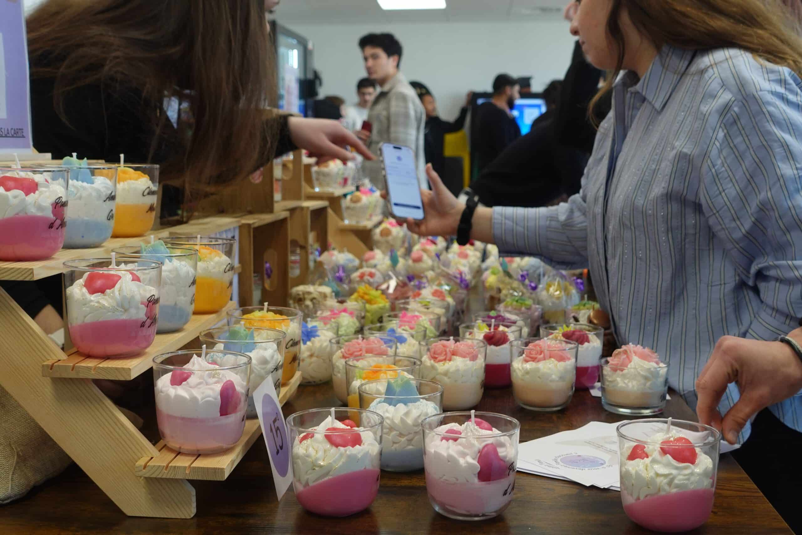 Installé au 4ᵉ étage du campus dès 9h, le stand proposait des bougies parfumées artisanales ainsi que de délicates créations en résine. Étudiants, formateurs et membres de l’équipe pédagogique ont profité de leur pause pour venir découvrir les produits, échanger avec les bénévoles et contribuer à cette belle initiative.