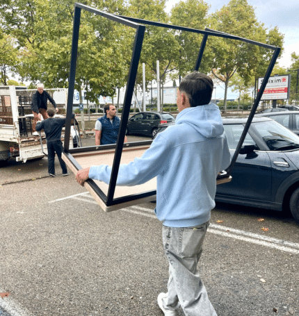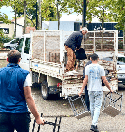 Au cœur de cette matinée, ce sont nos alternants qui ont donné le ton. Profitant de leur pause, plusieurs d’entre eux n’ont pas hésité à rejoindre l’équipe du centre pour aider au chargement du mobilier dans le camion de l’association. Leur participation, simple mais déterminante, a permis d’offrir une seconde vie à un équipement encore parfaitement utilisable.